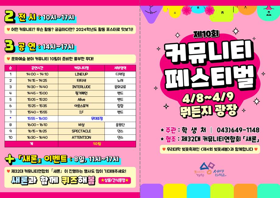 본문 시작 홈으로 학과생활 학과소개 교수소개 교과과정 학과생활 홈페이지가이드 사진게시판 공지사항 사진게시판 전공자료실 동아리 학과행사 사진게시판 페이스북 트위터 프린트 [학생처] 제10회 커뮤니티 페스티벌 산업디자인학과 1125 2025-04-02 목록 이전[인권센터] 2025학년도 학생대상(대학원생 포함) 폭력예방교육 다음 [CHARM케어상담센터] 2025학년도 1학기 자살예방교육 실시 담당부서 : 산업디자인학과 담당자 : - 연락처 : 043-649-1436 최종수정일 : 2024-10-26 만족도조사 만족도 조사 이 페이지에서 제공하는 정보에 대하여 만족하시나요? 매우만족 만족 보통 불만족 매우불만족