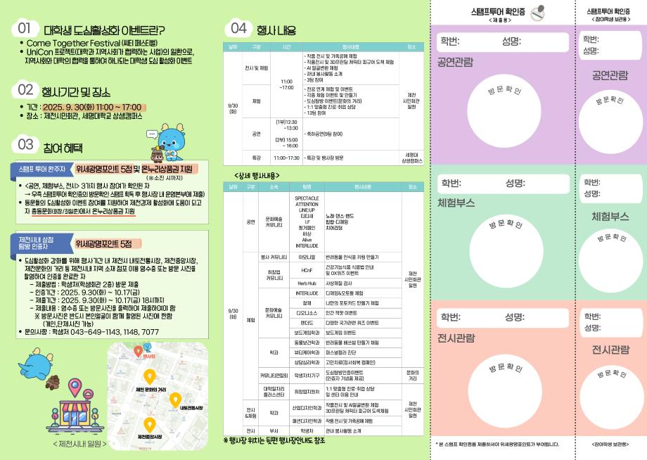 본문 시작 홈으로 학과생활 학과소개 교수소개 교과과정 학과생활 홈페이지가이드 사진게시판 공지사항 사진게시판 전공자료실 동아리 학과행사 사진게시판 페이스북 트위터 프린트 [학생처] 2025 대학생 도심활성화 이벤트[Come Together Festival(씨티페스티벌)] 개최 산업디자인학과 449 2025-09-24 학생처 목록 이전[기념품] 아트앤산업디자인학과 기념품 제작_에코백 다음 [세명대] 청룡체전 체험부스_산디과 동아리 활동 담당부서 : 산업디자인학과 담당자 : - 연락처 : 043-649-1436 최종수정일 : 2024-10-26 만족도조사 만족도 조사 이 페이지에서 제공하는 정보에 대하여 만족하시나요? 매우만족 만족 보통 불만족 매우불만족