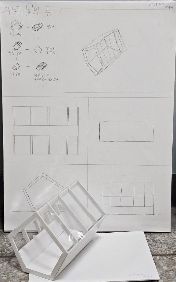 본문 시작 홈으로 커뮤니티 학과소개 교수소개 교육과정 학과 행사 및 활동 커뮤니티 홈페이지가이드 열린정보 학과일정 학과공지 채용정보 및 자료 열린정보 포토갤러리 먹거리, 즐길거리 포토갤러리 사진 사진 영상 사진 페이스북 트위터 프린트 사진 영상 1학년 중간 설계과제 건축학과 427 2025-10-30 1학년은 ‘건축공간구성’에서 스케치와 모형을 통해 공간을 탐구했습니다. 처음 도전한 판넬과 모델링이었지만, 각자의 아이디어와 독창성이 빛나는 작품들이 완성되었습니다 ✨ 건축가로 성장해갈 이들의 다음 걸음이 더욱 기대됩니다! 👣😊 목록 이전2학년 중간 설계과제 다음 세명대학교 홍보 포스터 만족도조사 만족도 조사 이 페이지에서 제공하는 정보에 대하여 만족하시나요? 매우만족 만족 보통 불만족 매우불만족
